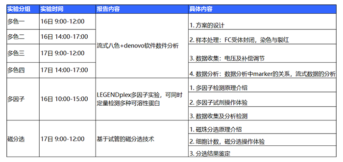 *注:請注意多色一、二、三、四為同一實(shí)驗(yàn),請根據(jù)自己的時間報名,請勿重復(fù)報名。上機(jī)實(shí)訓(xùn)多色實(shí)驗(yàn)擬招40人,多因子實(shí)驗(yàn)與磁分選實(shí)驗(yàn)分別擬招10人。