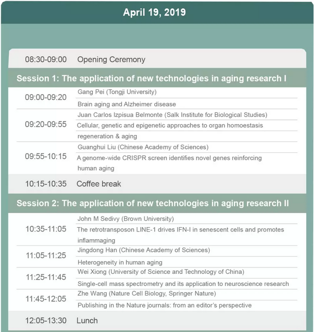 為促進國內外衰老生物學及相關領域的交流與合作,深入和廣泛地探討老年健康的機制,積極應對環境及遺傳因素引起的過早、過快老化及相關疾病等一系列重大科學問題,中國細胞生物學學會衰老細胞生物學分會聯合首都醫科大學宣武醫院,將于2019418-21日在北京召開2019國際衰老生物學大會。