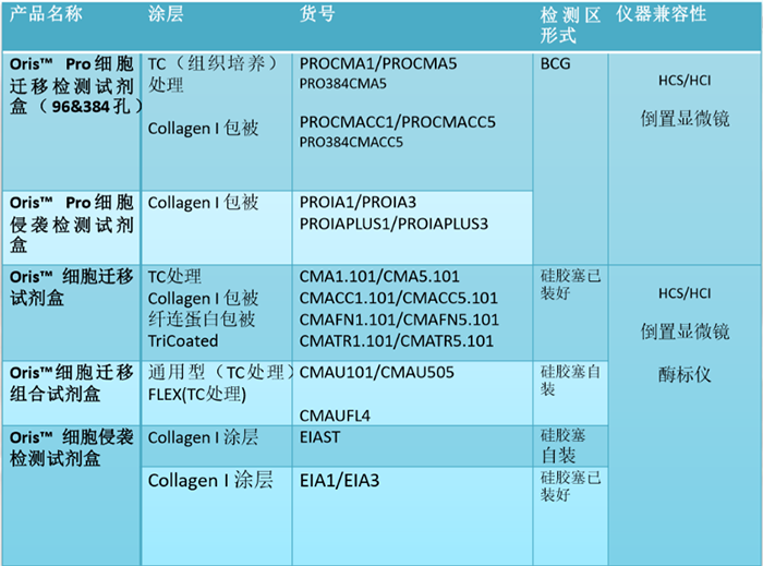 OrisTM和OrisTM Pro系列細胞遷移和侵襲實驗試劑盒具有以下優(yōu)點: