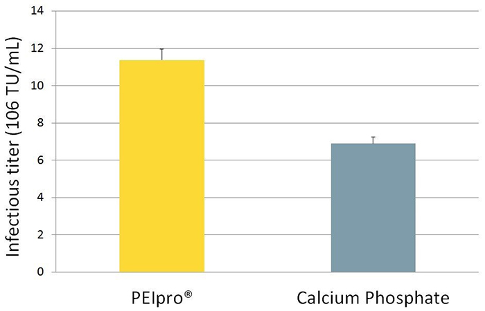 圖4.PEIpro?與磷酸鈣相比能得到更高的病毒滴度